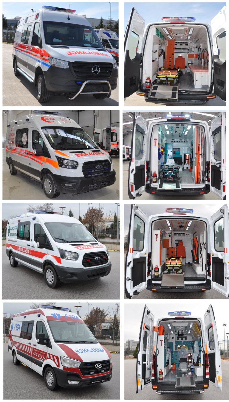 Dans nos véhicules d'ambulance, conçus conformément aux normes TS EN 1789, nous utilisons des marques et modèles de fourgonnettes tels que Mercedes, Ford, Volkswagen, Fiat, etc. Ces véhicules sont conçus pour le transfert de patients, l'assistance d'urgence ou les soins intensifs. Voici les caractéristiques clés des aménagements des ambulances :