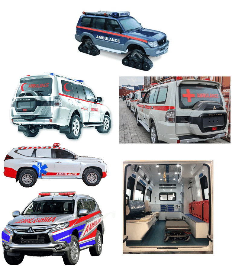 Votre ambulance Mitsubishi est un modèle à transmission 4x4 conçu pour offrir une grande mobilité sur des surfaces enneigées. Le véhicule est équipé de chenilles et de pneus, qui peuvent être rapidement échangés. L'ambulance Mitsubishi dispose d'une lumière LED sur le toit contrôlée par le conducteur et d'un système de sirène pouvant fonctionner en différents modes. Le sol de l'ambulance Mitsubishi est recouvert d'un matériau antibactérien, lavable et antidérapant. L'intérieur est isolé pour le son et la chaleur, et renforcé par des poutres de support. Le système électrique comprend un panneau de contrôle permettant au conducteur de gérer le système électrique de la cabine des patients indépendamment du système électrique principal du véhicule, avec un interrupteur principal pour la séparation. Le système de chauffage est un chauffage diesel indépendant qui puise le carburant dans le réservoir du véhicule, garantissant de la chaleur sans dépendre du moteur. Le plafond est en matériau ABS, équipé d'un système d'éclairage, de poignées de maintien et de supports pour les poteaux de perfusion. À l'arrière, l'ambulance Mitsubishi est dotée d'une rampe pour brancard permettant un chargement par une seule personne. À l'intérieur, on trouve des placards à oxygène en matériau en mousse, des étagères et des tiroirs pour le rangement. Le véhicule peut être personnalisé avec des inscriptions et des bandes selon vos préférences.